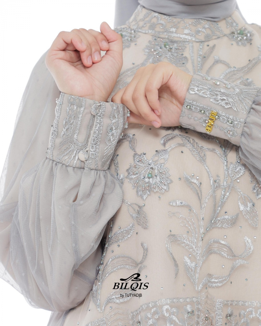 Dirancang dengan detail halus dan warna yang menenangkan,dress ini menjadi simbol keanggunan perempuan di Hari Raya.