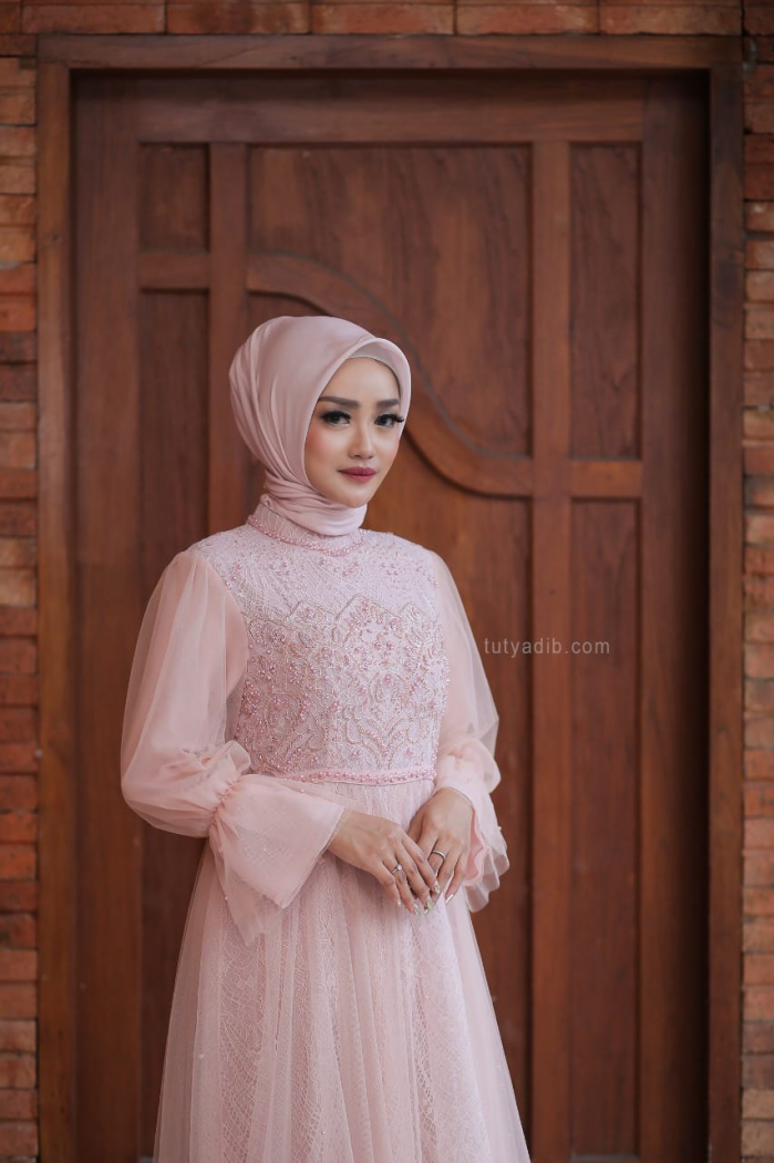 Gamis Ceruty kombinasi organdi dengan hiasan brocade dan payet handmade